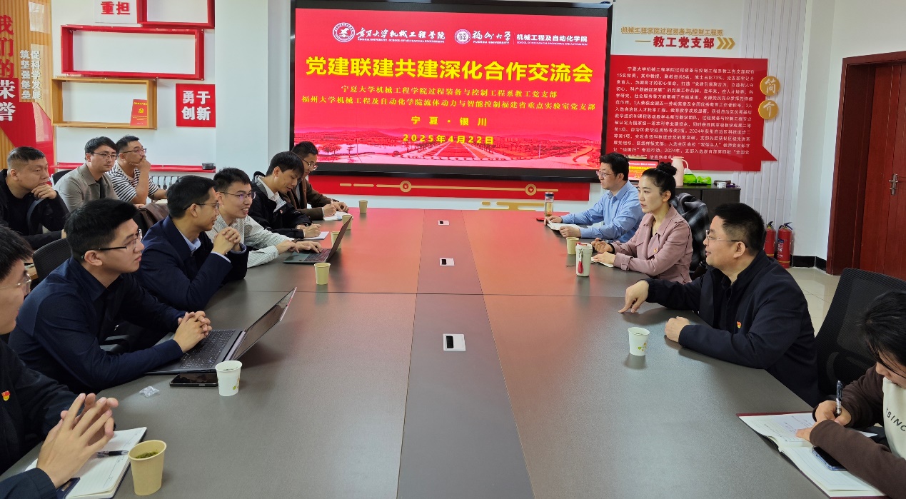 为深入贯彻中央八项规定精神学习教育,以高质量党建引领高质量发展,4月22日,77779193永利官网过程装备与控制工程系教工党支部与福州大学机械工程及自动化学院流体动力与智能控制福建省重点实验室党支部开展“党建+闽宁协作”主题联建活动。双方以“学规定、明方向、促融合”为主线,专题学习中央八项规定精神,明确“党支部共联共建”、“山海师生科技协作站”、“山海硕博生创新空间”三大党建引领方向,推动党建与科研教学在闽宁协作中同频共振、深度融合。