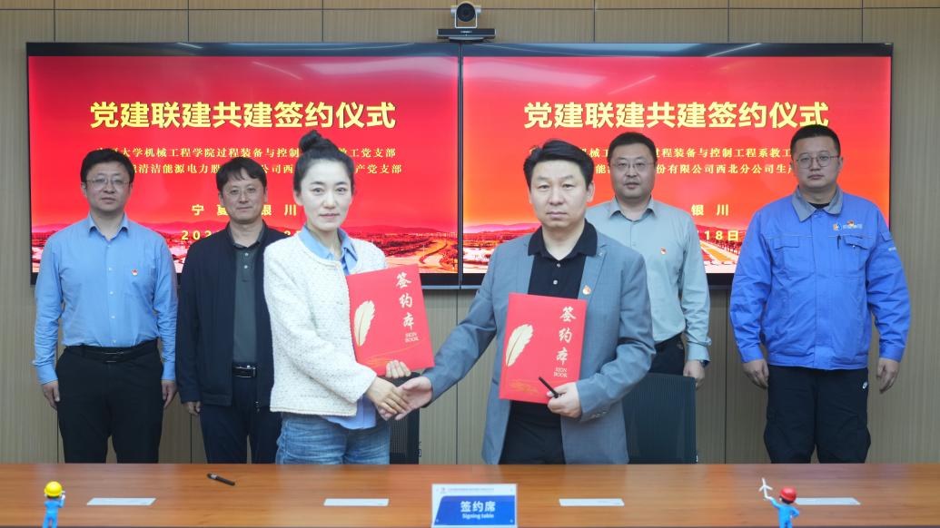 2025年4月18日下午,过程装备与控制工程系教工党支部与北京京能清洁能源电力股份有限公司西北分公司生产党支部党建联建共建签约仪式在银川市金凤区百盛王朝大厦隆重举行。此次签约仪式是学院深入学习贯彻习近平新时代中国特色社会主义思想,落实新时代党的建设总要求的重要举措,也是学院在服务国家战略、推动校企合作、强化基层党组织建设等方面的一次积极探索。