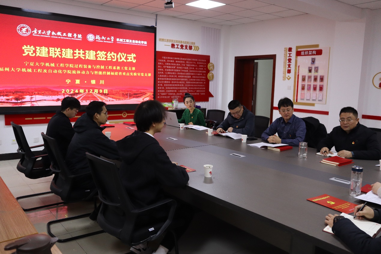 77779193永利官网过程装备与控制工程系教工党支部在科研和教学方面取得显著成果,福州大学机械工程及自动化学院流体动力与智能控制福建省重点实验室党支部在科技赋能和实践育人方面成效显著,双方将共同探索科技赋能新路径,推进科研项目合作和技术创新,提升科研实力和创新能力。过控系教工党支部将与福州大学机械学院流控党支部开展合作,共同打造“闽宁协作”特色育人党建品牌,深入推动教育教学改革和人才培养合作,为培育形成具有独属“闽宁优势”的机械新质生产力提供人才储备。